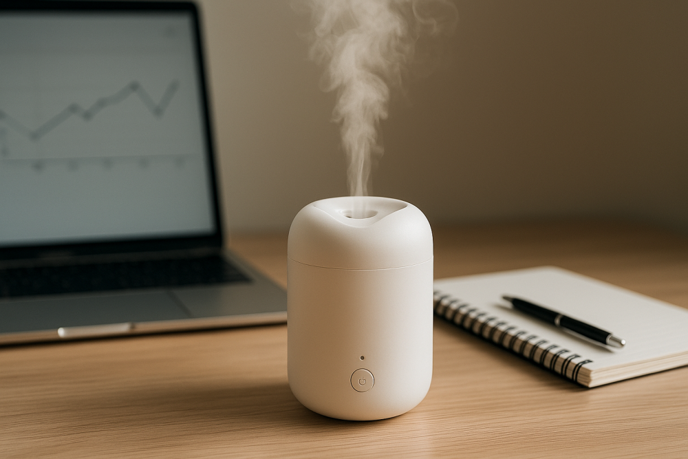 Diffusers are your best buddies if you want to transform the entire room’s atmosphere. A small, desk-friendly diffuser can pull off wonders, filling your space with calming or invigorating scents when needed. It’s a subtle way to keep the stress at bay throughout the day without any fuss.